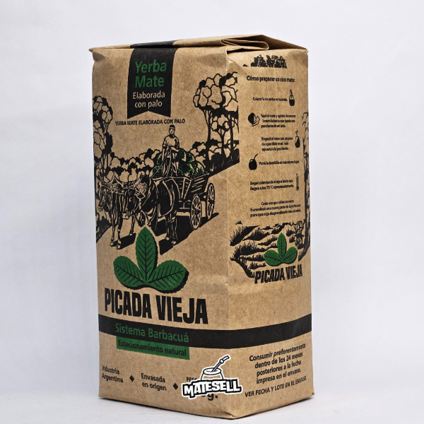 Yerba Mate Picada Vieja, una experiencia única para los amantes del mate. Elaborada con el ancestral sistema barbacuá y cuidadosamente seleccionada, esta yerba mate combina hojas y palo para brindarte un sabor auténtico y tradicional.