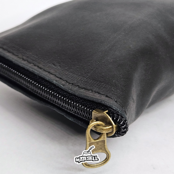 Yerbero sobre de cuero negro liso confeccionado con cuero de la mejor calidad..
