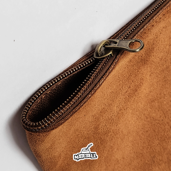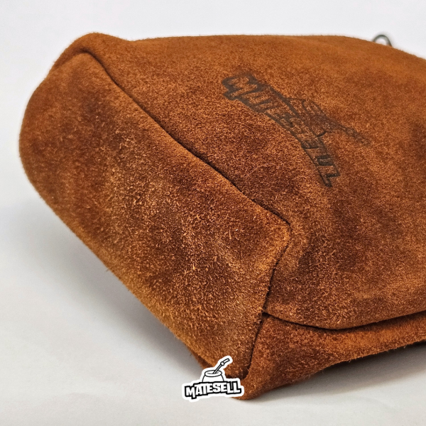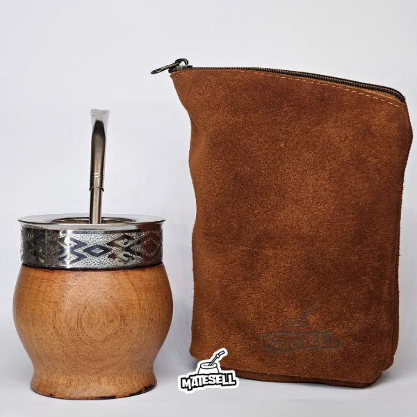 Este yerbero de cuero gamuzado con base color marrón suela combina elegancia, calidad y funcionalidad en un diseño pensado para el uso diario.