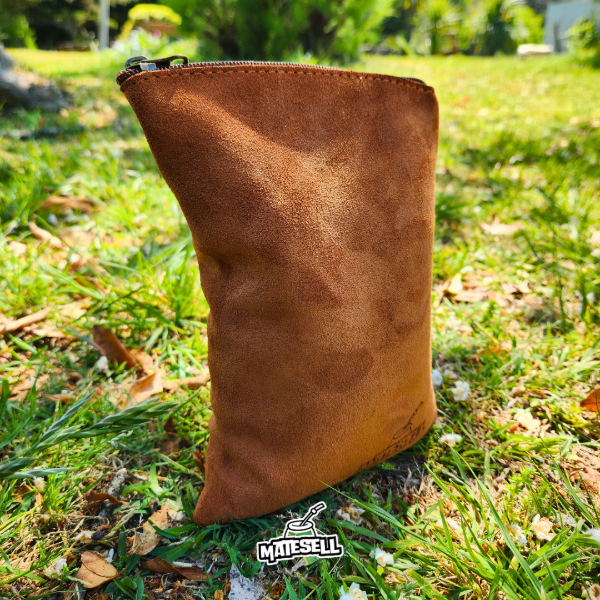 Yerbero sobre de cuero gamuzado, confeccionado con cuero de la mejor calidad estilo gamuza.