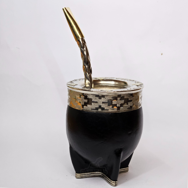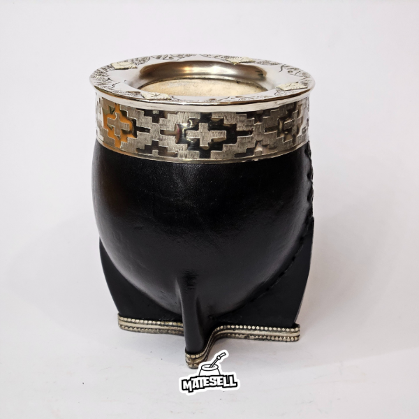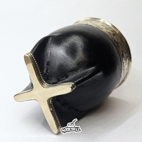 El Mate Imperial de calabaza es una pieza clásica y elegante, diseñada para quienes disfrutan del ritual del mate con estilo y calidad. Su cuerpo está elaborado con calabaza natural seleccionada, forrada en cuero grueso liso negro, lo que le otorga una textura firme y un acabado sobrio y distinguido.