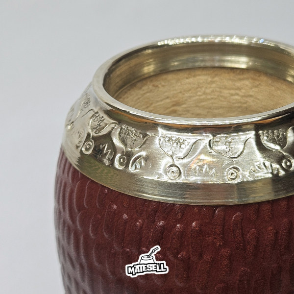 El Mate Torpedo Signature es la joya de nuestra línea más alta, creado para quienes buscan la excelencia en cada cebada. Confeccionado artesanalmente con una calabaza seleccionada de primera calidad, está revestido en elegante cuero croco marrón que combina resistencia y distinción.